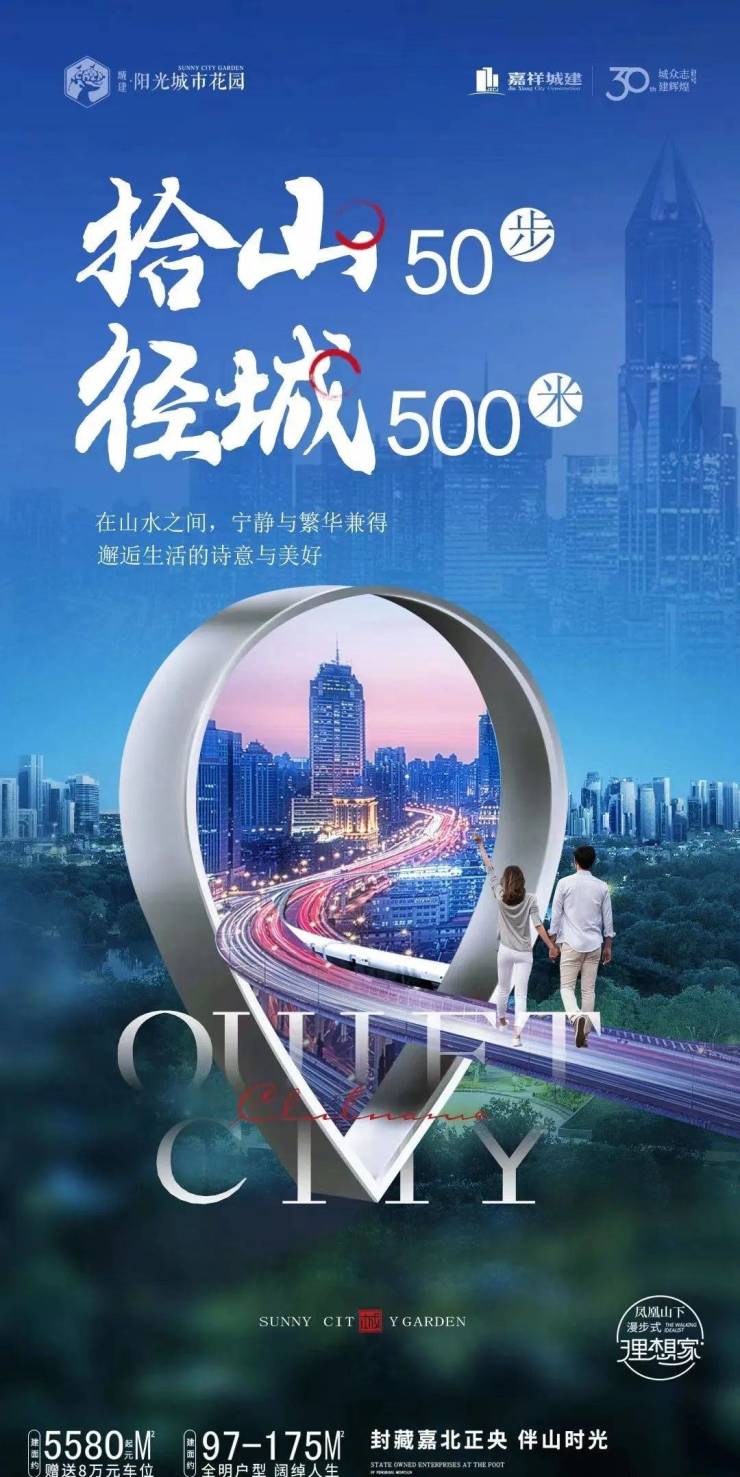 拾山50步,径城500米。阳光城市花园在山水之间,宁静与繁华兼得,邂逅生活的诗意与美好。建面约97-175㎡,全明户型,阔绰人生。