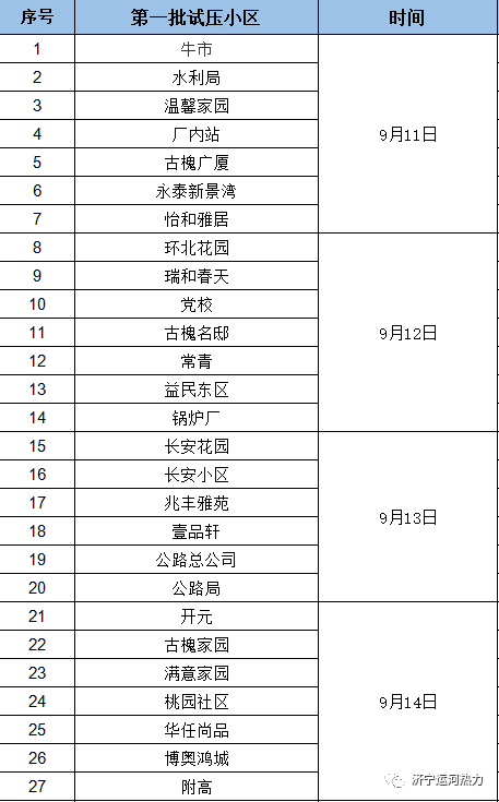 第一批试压小区具体试压时间,详见下表。