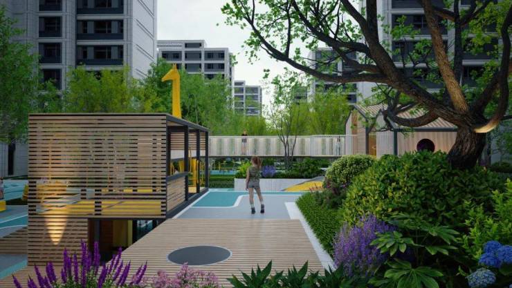 在能源蓝城·春风仁里,楼宇之间皆是“休闲绿地”、“林下空间”,互动景观充分拓展了人与景观的互动空间。同时,项目集仪式感与交互性两大特性,从仪式感、自然感、交互感、观赏感四个方面,为济宁人居刷新园林艺术标准。