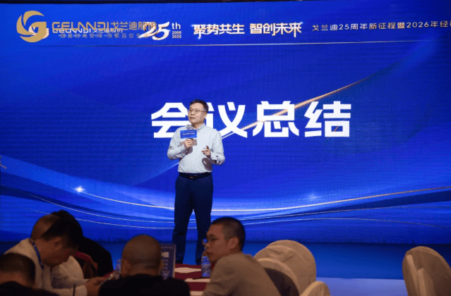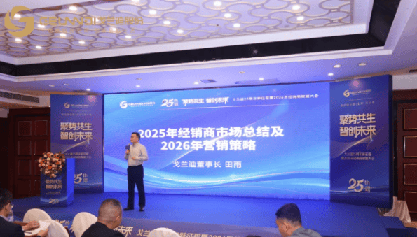 在题为《2025年经销商市场总结及2026年营销策略》的压轴报告中,田雨董事长用数据说话:在充满挑战的2025年,戈兰迪经销商体系实现了销售增长率96% 的逆势飞扬。他系统回顾了“百城千店”地面推广、四大终端赋能工具(检测魔盒、导购系统、铭牌、灯箱)等组合拳的有效性。面向2026,他正式发布了名为 “一二三四五” 的清晰作战方针:坚持一个食品级核心战略;推动产品功能与服务体系双重升级;用好三大终端工具;开拓老店深挖、新店开发、新渠道、新媒体四大路径;落实业绩、盈利、产品、价格、团队五大增长策略,并定下了渠道销售增长49% 的进取目标。