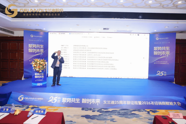 2025年11月25日,中国广州 —— 在大家居产业深度转型与存量竞争时代全面到来的关键节点,国内人造石行业标杆企业戈兰迪,于其创立二十五周年的里程碑时刻,在广州隆重召开主题为“聚势共生·智创未来”的2026年度经销商赋能大会。本次大会不仅是一次行业的年度聚会,更被视为一场定义未来竞争规则的战略发布会。大会汇聚了来自全国的核心经销商、中国石材协会、中国建筑装饰协会的权威专家、知名战略顾问及行业媒体,共同见证了一项里程碑事件:由戈兰迪牵头起草的《食品接触用树脂合成石英石台面标准》(征求意见稿)正式面世。此举标志着“食品级台面”从一个企业创新理念,跃升为整个行业即将遵循的规范性品类,开启了健康家居台面的全新时代。