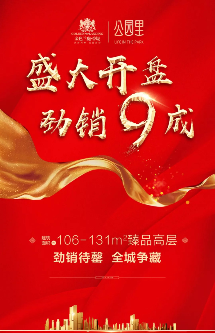 金色兰庭香堤·公园里建筑面积约106-131㎡瞰景新品,开盘劲销九成!盛况空前,势不可挡!此次开盘,房源劲销超九成,房源表一路飚红,再创销售传奇!