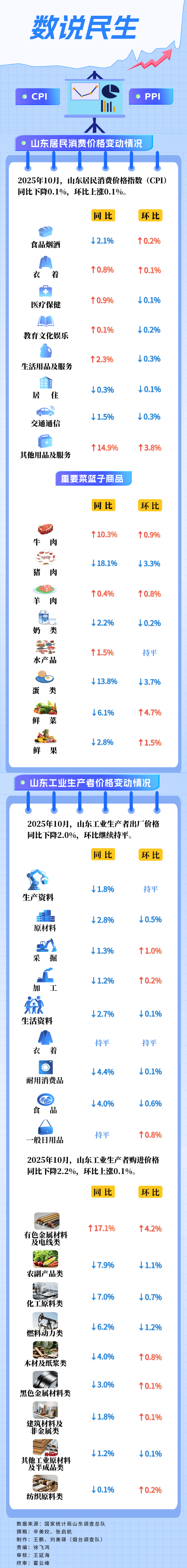 2025年10月,山东居民消费价格指数(CPI)同比下降0.1%,环比上涨0.1%。