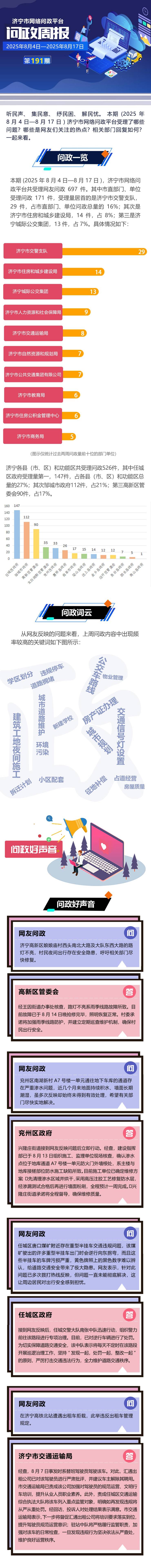 济宁市网络问政平台问政热点(2025年8月4日—8月17日)