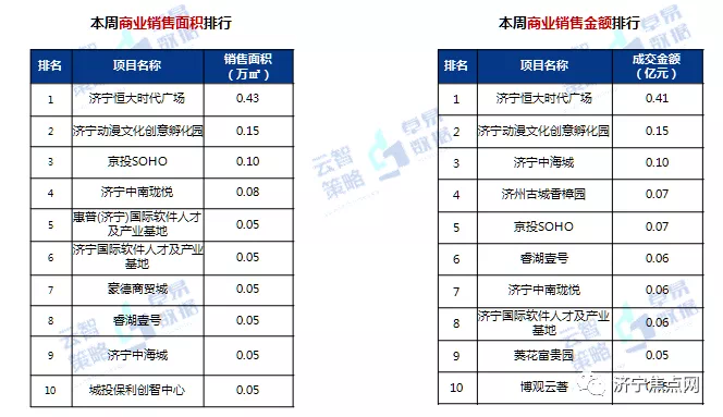 本周济宁恒大时代广场项目以销售面积0.43万㎡,销售金额0.41亿元,位居双排行榜排名前列。