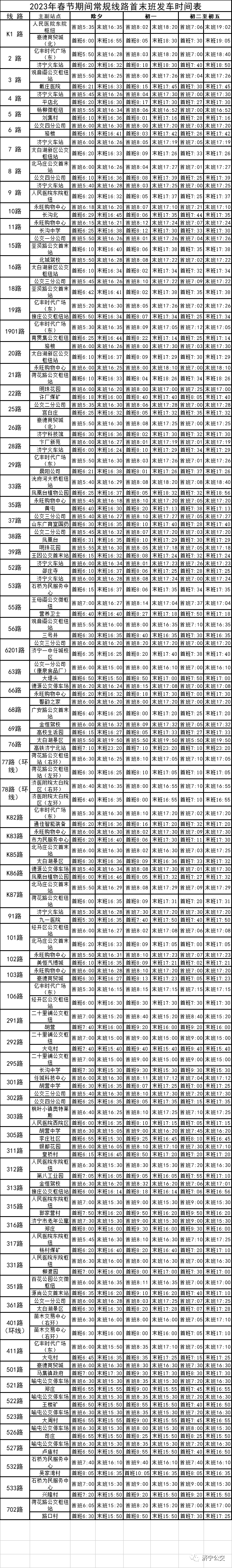 记者从济宁公交获悉,为保障春节期间群众出行,合理统筹安排好公交线路首末班发车时间,按照上级春运文件精神和联防联控机制要求,2023年春节期间,济宁公交集团将结合以往春节运营时间及市民节日出行习惯对所属线路首末班运行时间作出调整,敬请广大市民乘客关注运营时间,合理安排行程。