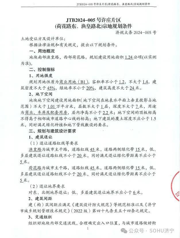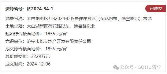 地块名:太白湖新区JTB2024-005号许庄片区(荷花路东、渔皇路北)宗地【济宁市长立地产开发有限责任公司竞得】