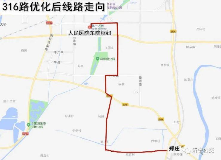 316路拟调整为:从“人民医院东院枢纽”发车,沿高新大道向北至联华路,沿联华路向东至祥济路,沿祥济路向南至开源路,沿开源路向西进入原线路至终点站“郑庄”。
