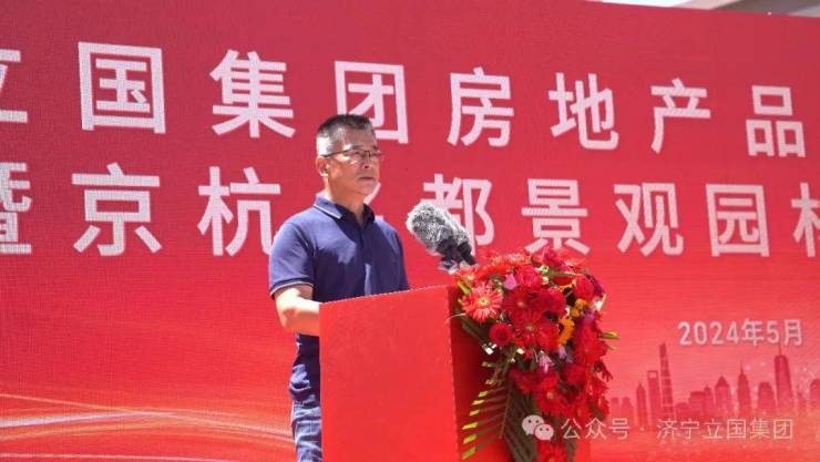 5月15日,立国集团房地产品牌升级发布会暨京杭名都景观园林升级开工仪式在立国·京杭名都盛大举行。出席本次活动的领导有:市住房保障中心副主任王力、任城区住建局局长李庆峰、市品牌促进会会长秦烨伟、市房地产协会秘书长孙保亚、任城区济阳街道党工委书记王灿、立国集团董事长王成国、立国集团总经理王杰以及山水比德设计院院长孙述虎 。
