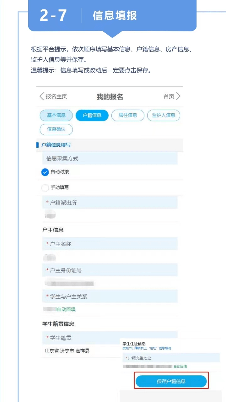 3.信息填报流程(具体看文件后面附件:嘉祥县义务教育网上报名操作手册)