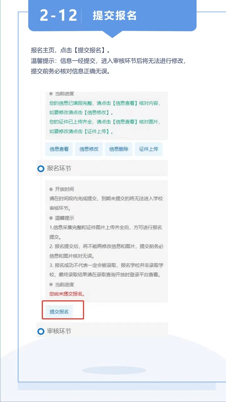 (1)招生服务平台对注册账户进行了限定,每个账号只能实名认证一次,并由省级平台统一管理,请勿实名认证多个账号,学生、监护人信息请勿泄露,以免无法报名。