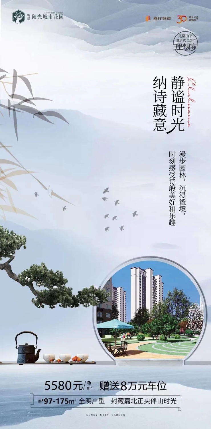 静谧时光,纳诗藏意。漫步园林,沉浸谧境,时刻感受诗般美好和乐趣。阳光城市花园5580元/㎡起,赠送8万元车位。