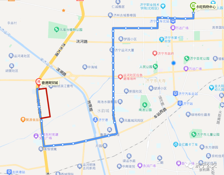 自永旺购物中心起,沿原线路至济水大道、渔歌路、安宁路、居礼路至终点站豪德商贸城,撤停豪德C区1处公交站点。