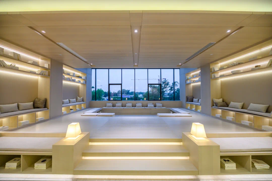 设计师在孔子对“绘事后素”的美的感知中汲取灵感,以整个空间形式简洁且纯粹为底色,通过大面积的落地玻璃窗,让室外的太白湖景色、古运河风光作画,绘就“居游于自然间”的古意,承载一份属于当代人的生活方式。