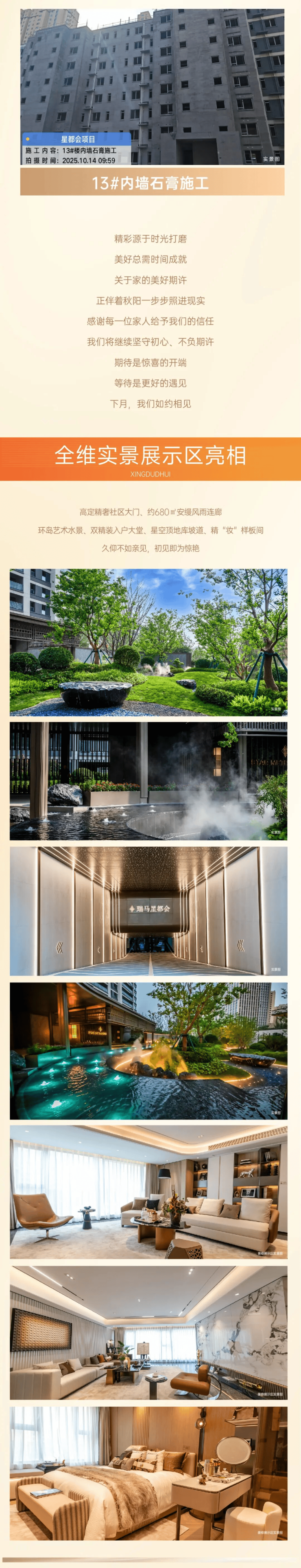 瑞马星都会高定精奢社区大门、约680㎡安缦风雨连廊,环岛艺术水景、双精装入户大堂、星空顶地库坡道、精“妆”样板间,久仰不如亲见,初见即为惊艳。