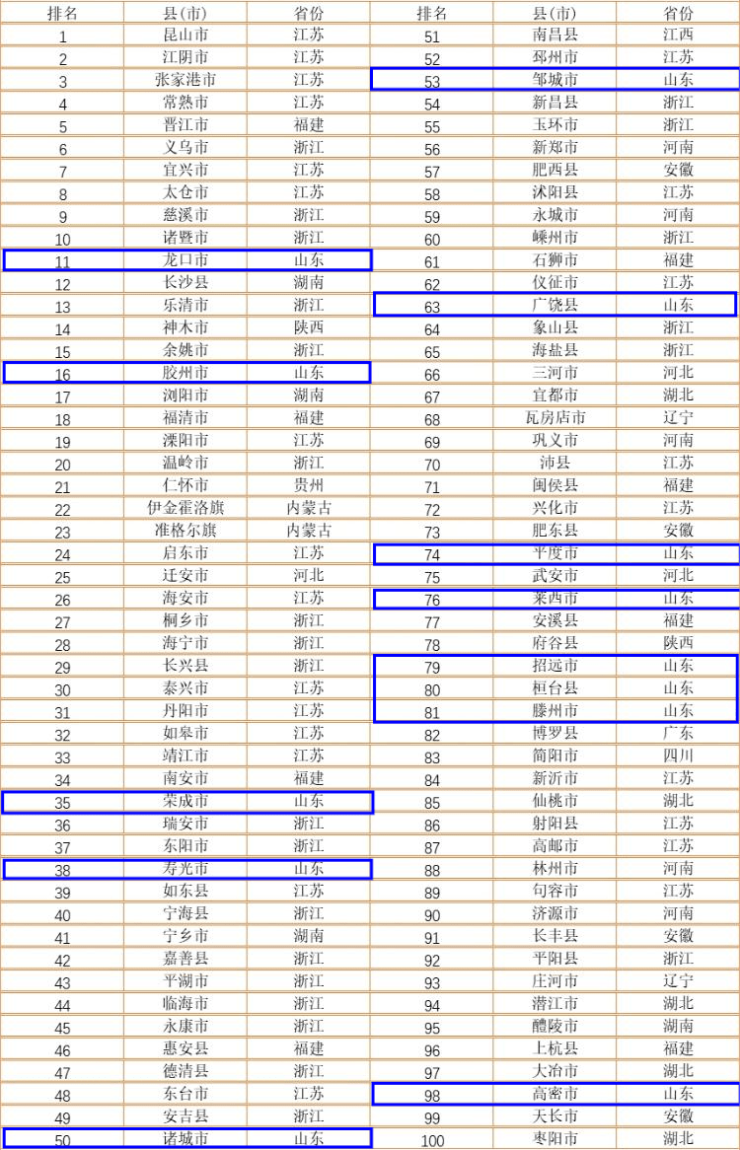 济宁一地上榜!全国县域经济综合竞争力100强排名出炉
