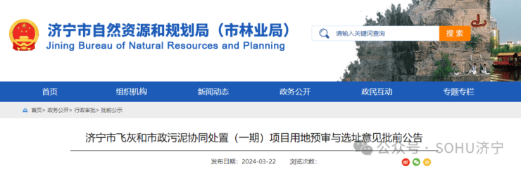 近日,搜狐网济宁小编相关渠道获悉:济宁市飞灰和市政污泥协同处置(一期)项目用地预审与选址意见获批前公告。该项目涉及土地2.8571公顷(约43亩),具体情况如下: