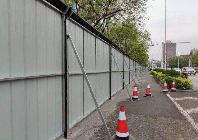 在洸河路与古槐路交叉路口,工作人员正在进行东西两侧的围挡施工,工作人员介绍,围挡施工完成后,还将在围挡沿线安装灯带,方便市民通行并起到警示作用。同时,围挡全线安装喷淋设施,外侧增设安全文明施工宣传牌。