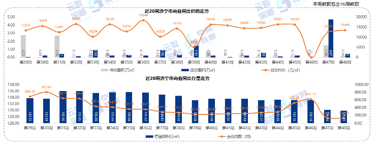 据云智策略&卓易数据监测显示,第48周济宁市商业供应0.20万㎡,成交0.45万㎡,存量129.91万㎡。