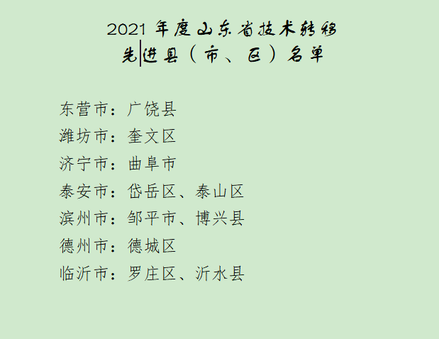 为深入落实创新驱动发展战略,加快县域科技成果转化工作,促进区域高质量发展,根据《山东省技术转移先进县(市、区)创建活动方案》(鲁科字〔2019〕133号)和《2022年度山东省技术转移先进县(市、区)绩效评价方案》要求,省科技厅组织开展了2021年度山东