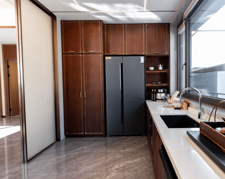 能源蓝城·春风仁里一期、二期分别选用拥有一级能效的博世/松下品牌冰箱,且拥有优异的保鲜技术,节省电费的同时,还能锁住食材的营养和美味。产品支持自由嵌入,可提升厨房美观度,让每一次的烹饪时光,都更惬意与自如。