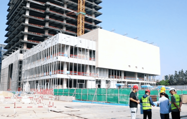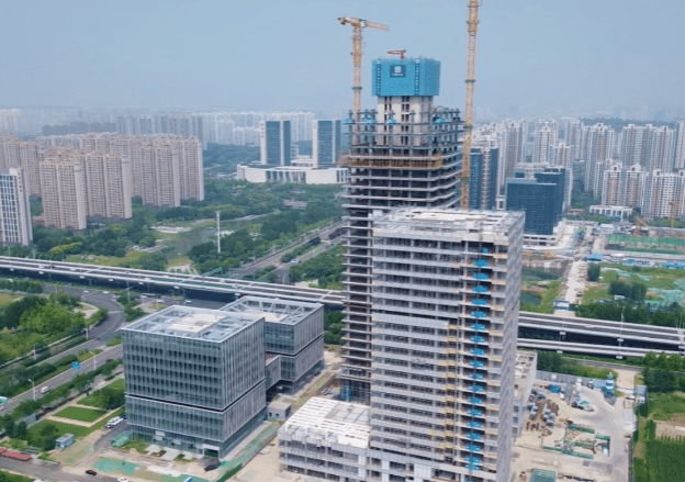 济宁金融中心A2地块基础设施项目规划建设金融大厦180米高,以及财金大厦100米高,汇金服务中心50米高,三栋高品质的商务写字楼及配套设施。目前,金融大厦已施工至34层,财金大厦施工进度到60%,汇金服务中心已完工准备投入使用。其中,金融大厦超高层结构工程量大、工序复杂、施工周期长。项目科学应用34项“四新”技术,新技术、新工艺、新材料、新设备,提高现场施工效率压缩主体工期。项目实施“不等高同步攀升”等综合施工技术,将核心筒与外框进行分区流水施工。既降低了每层的工作量又混合了混凝土、钢结构施工特点将两者分离施工避免了交叉作业,降低效率的问题。