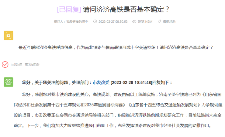 济济高铁(济南至济宁)是否基本确定?最新官方回复来了
