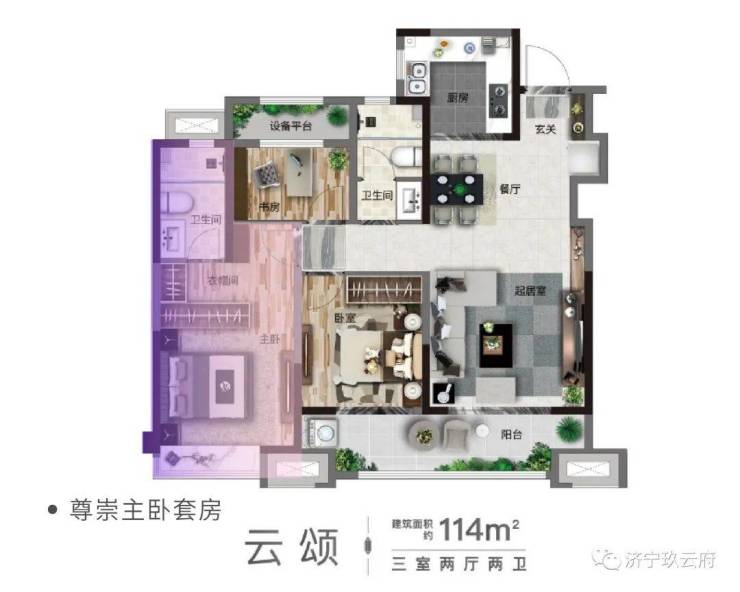 房子行不行,关键看户型。玖云府建面约114㎡云颂户型,突破尺度营造,大面宽、短进深、高通透,格局方正,户户带套房主卧,双开间阔尺阳台……堪称领衔济宁的进阶户型,引发了众多置业者的热询。
