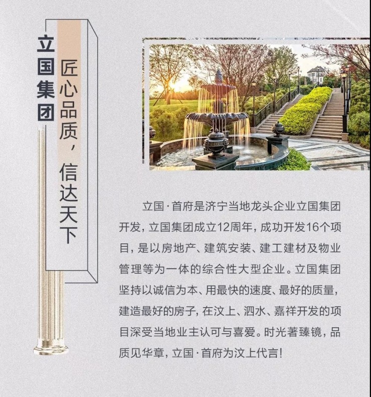目前汶上是围绕两芯一轴,一带五区发展,东部地区是政府打造区域,而立国首府是位于东部的核心位置。北依中达广场、银座商城,西揽南湖公园,南边为民服务中心、健身会所,便利生活触手可及,享城市繁华与优越环境,新城芯,远见未来。