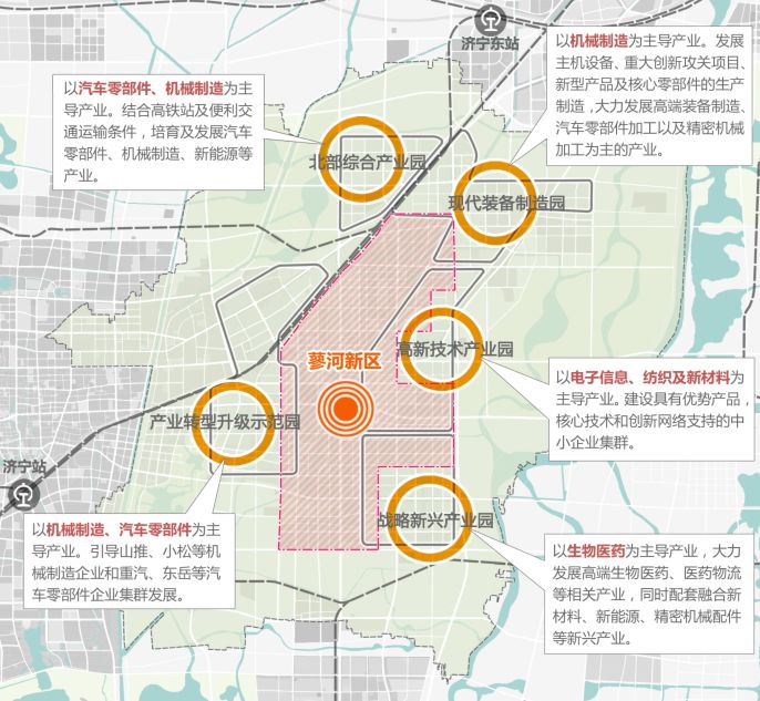 蓼河新区作为区域产城融合中心联动五大园区,支撑产业发展,具备雄厚的产业优势。