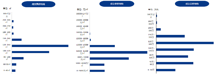 据云智策略&卓易数据监测显示,本周全市商品住宅成交主力面积段120-150㎡;主力成交单价段10000-12000元/㎡;主力总价段120-150万。