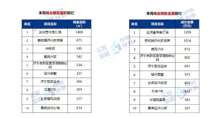 本周运河壹号食汇城项目以销售面积1409㎡,销售金额1209万元,位居商业销售金额,面积双排行榜排名前列。