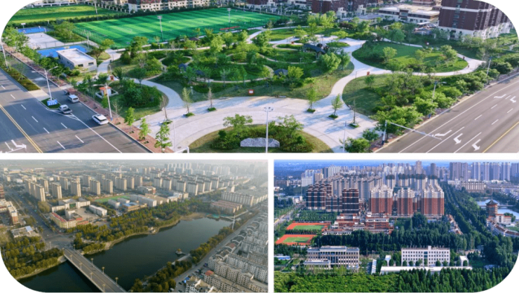 汶上县城东北片区城市更新工程项目实施“棚户区改造安居、教育高地建设、配套公共服务民生、基础设施改造提升”四大工程。棚户区改造安居工程主要对3 个片区棚户区改造,均高标准配套了社区服务中心、社区康养中心、体育健身中心。教育高地建设工程主要建设小学、初中、高中、职业教育、特殊教育等学校,每个小区配建幼儿园,形成 5 分钟教育圈。配套公共服务民生工程围绕 M15 生活圈标准,配套实施了绿地、体育、养老等公共服务设施。基础设施改造提升工程按照海绵城市建设标准,规划实施路网畅通工程。