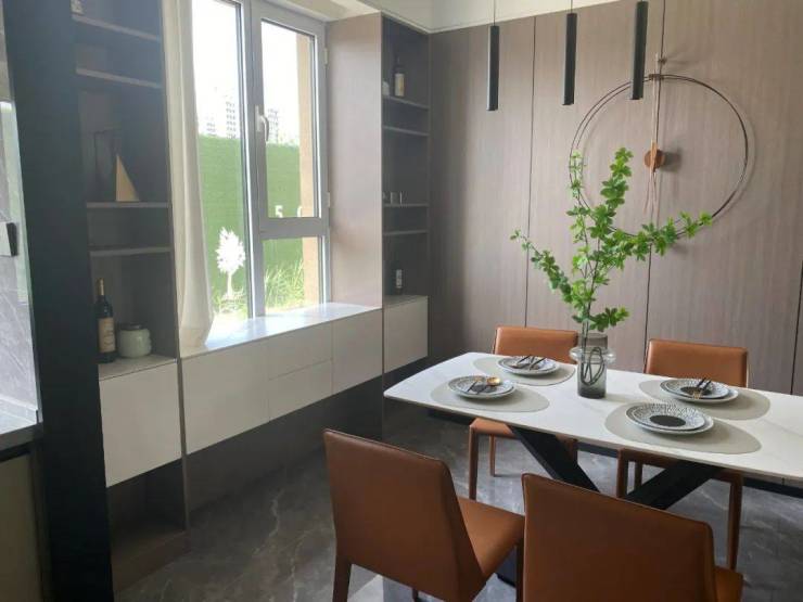 公共空间,作为承载家庭关系的载体,其布局与设计对人与人之间的情感交流起着至关重要的作用。光扬·江山樾采用餐客厨一体化高效空间布局,客厅、餐厅、厨房以居家动线连通。无论空间还是视觉上都更显开阔,让生活更为游刃有余。