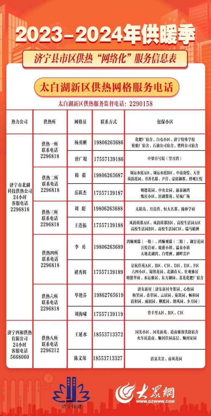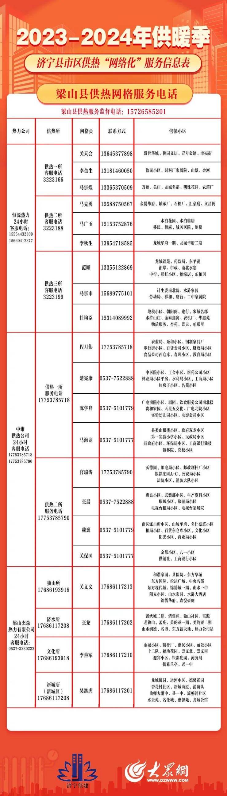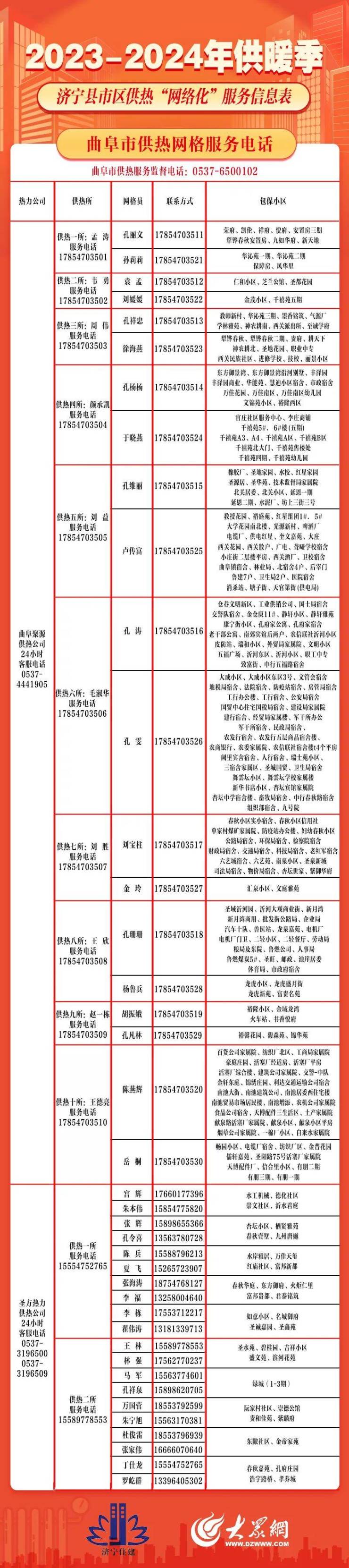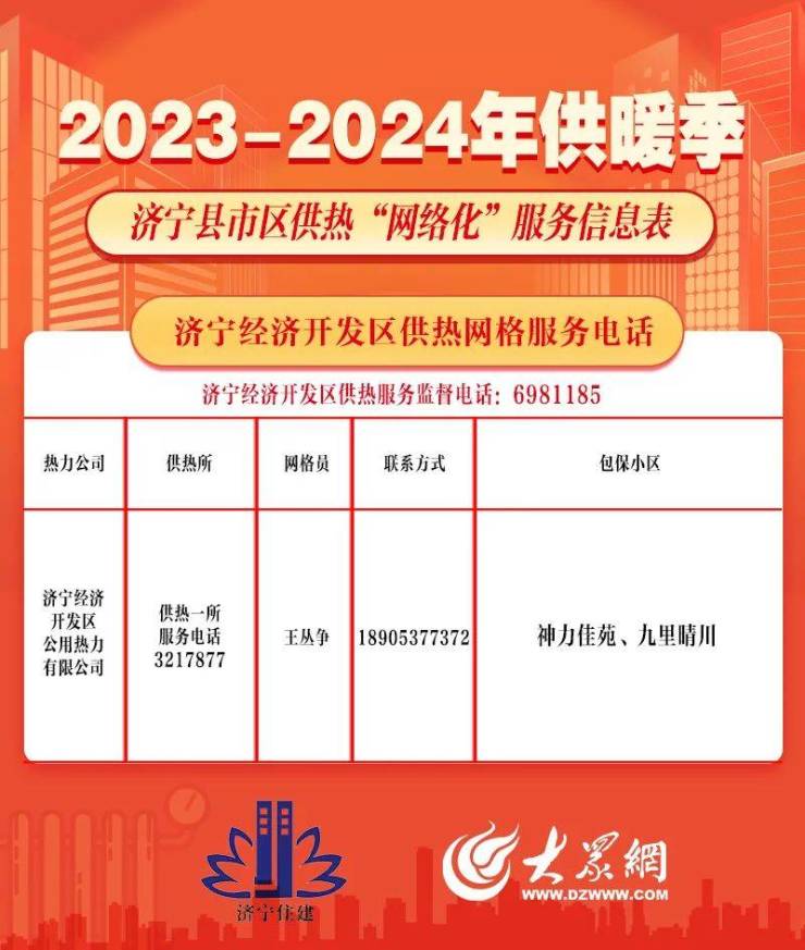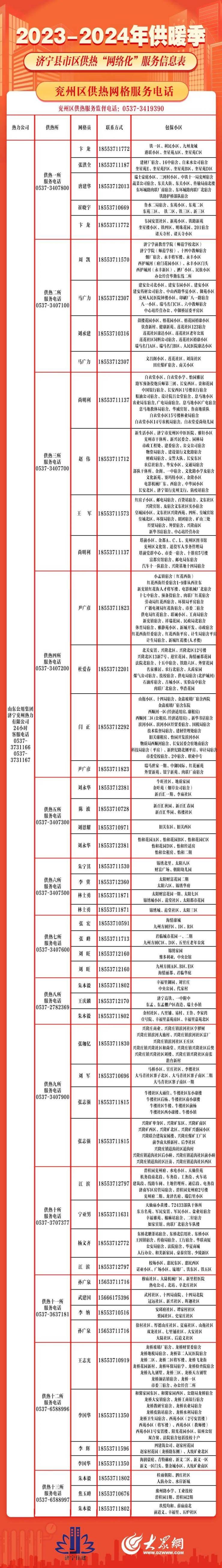 保障供暖正常运转!济宁县市区供热“网格化”服务信息出炉