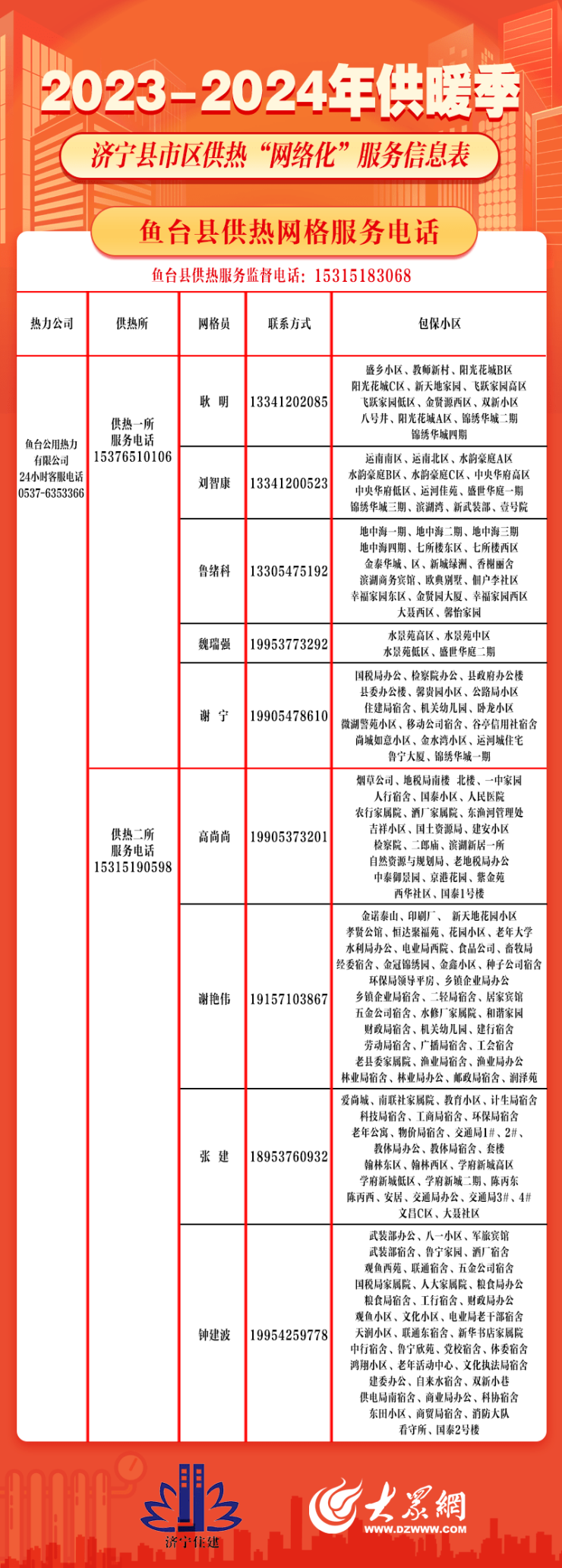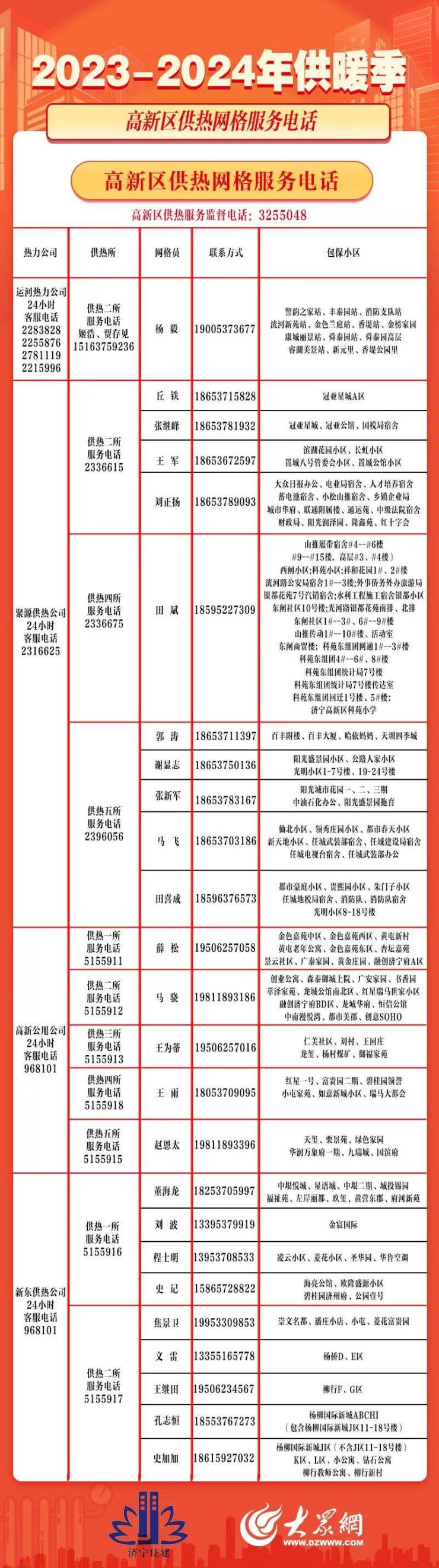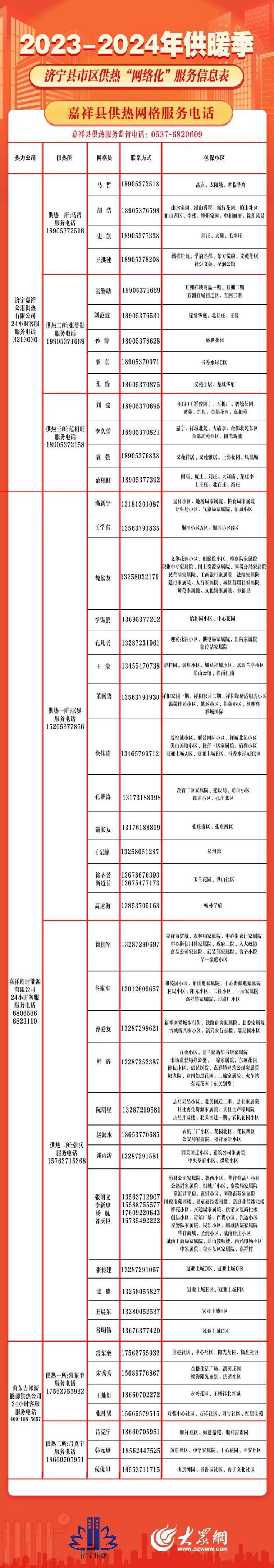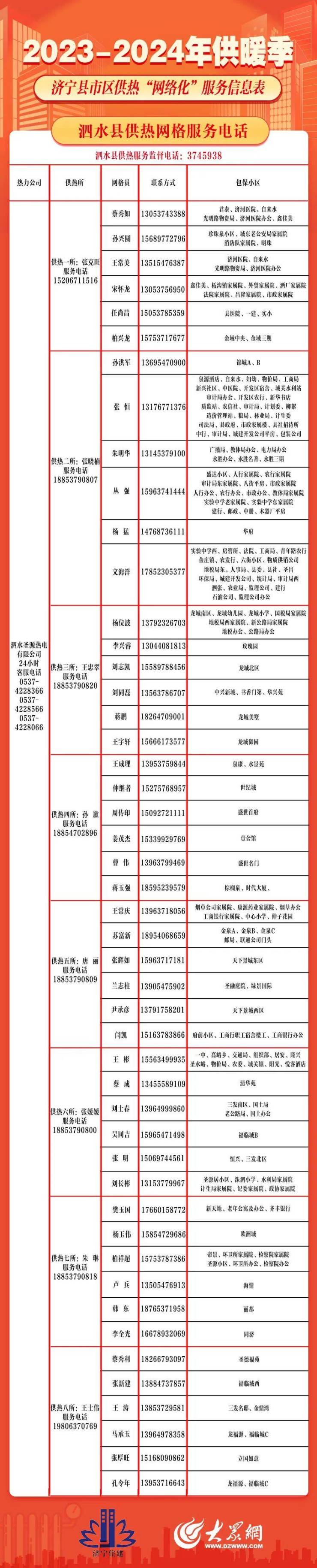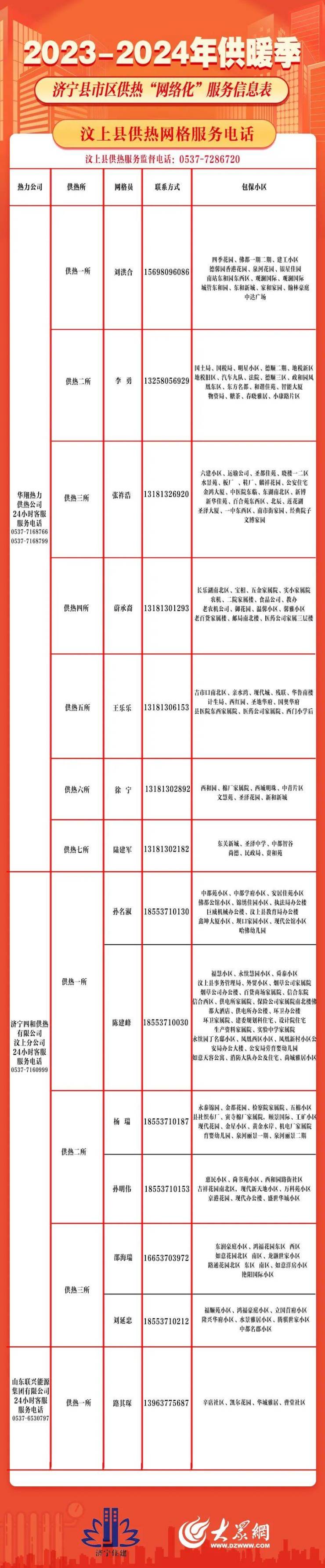 保障供暖正常运转!济宁县市区供热“网格化”服务信息出炉