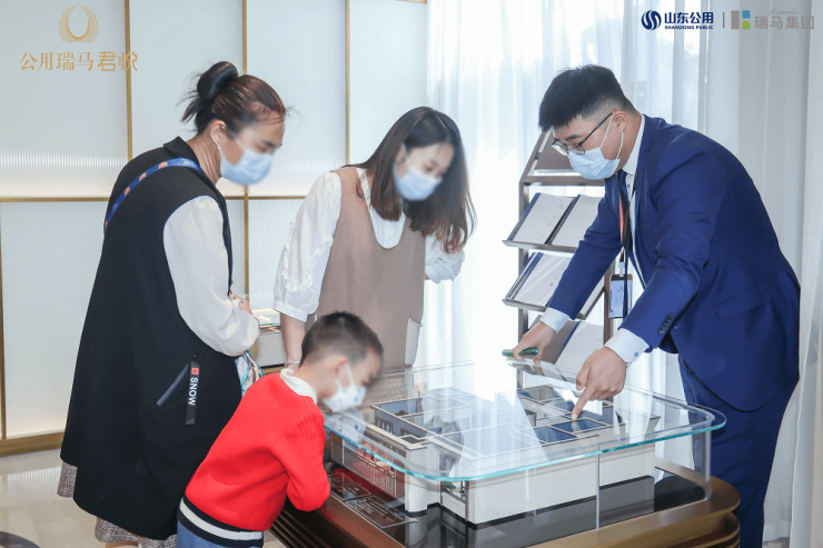 5月1日当天上午,公用瑞马君悦售楼中心与精装样板间璀璨启幕!上午9点00分,客户及媒体嘉宾陆续到场,工作人员按照防疫规范,引导来宾扫场扫场所码、查行程码、测量体温,有序登记进场,一睹公用瑞马君悦的风采。山东公用与瑞马集团相关领导、地产媒体朋友、抖音大咖等纷纷亲临现场。活动还未开始,售楼中心外便聚集了众多来宾,很多慕名而来客户,只为共同见证这场极具意义的盛会。