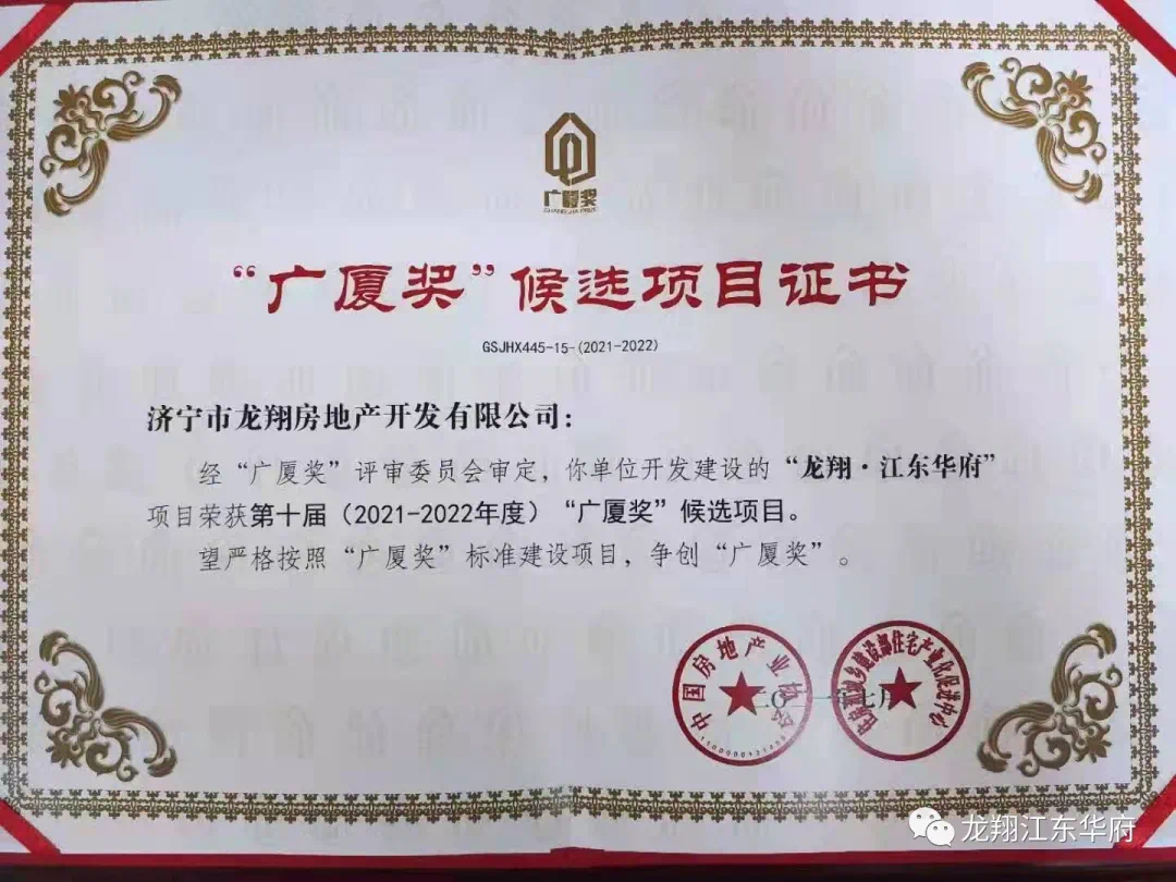 第十届“广厦奖”第二批名单出炉:龙翔江东华府榜上有名