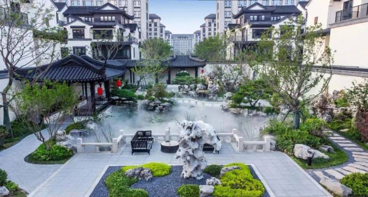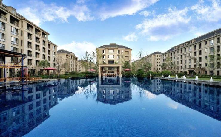 同一年,绿城携诚园而来,沿袭中轴对称的礼序园林布局思想,绿城从儒家“仁”理念出发,真正进入每家每户的生活体验。通过“小区入口—中央景观—庭院—入户门”形成独有的四重渐进的归家礼序,营造出惬意尊贵的居住氛围。并形成以泳池或中央水景为中心的最大的聚会空间,力求打造出一个互助、互爱、互动的社区。