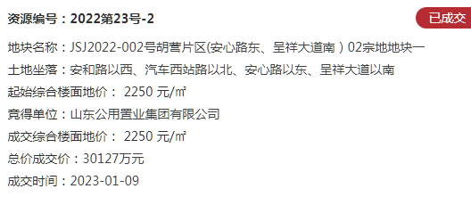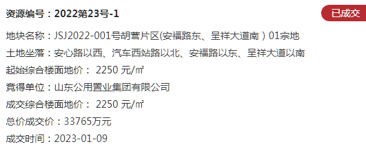 地块一:JSJ2022-001号胡营片区(安福路东、呈祥大道南)01宗地【山东公用置业集团有限公司竞得】