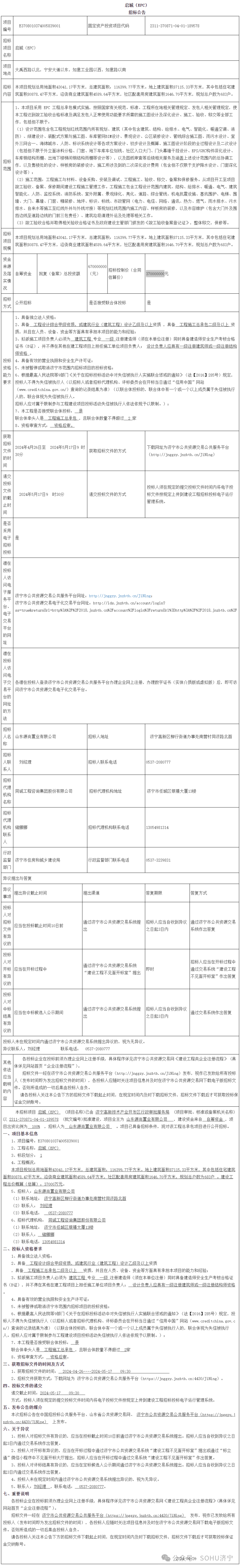 估算投资3.7亿!济宁高新区一商住项目建设工程招标