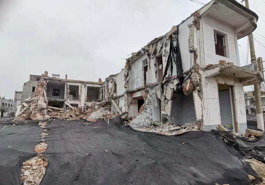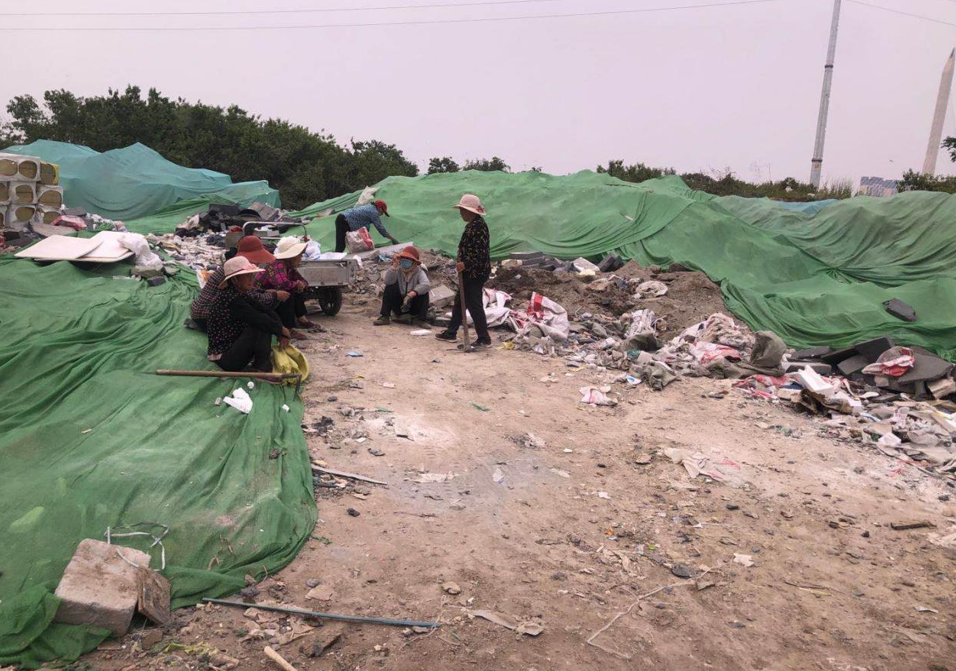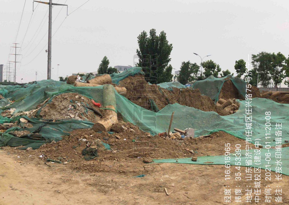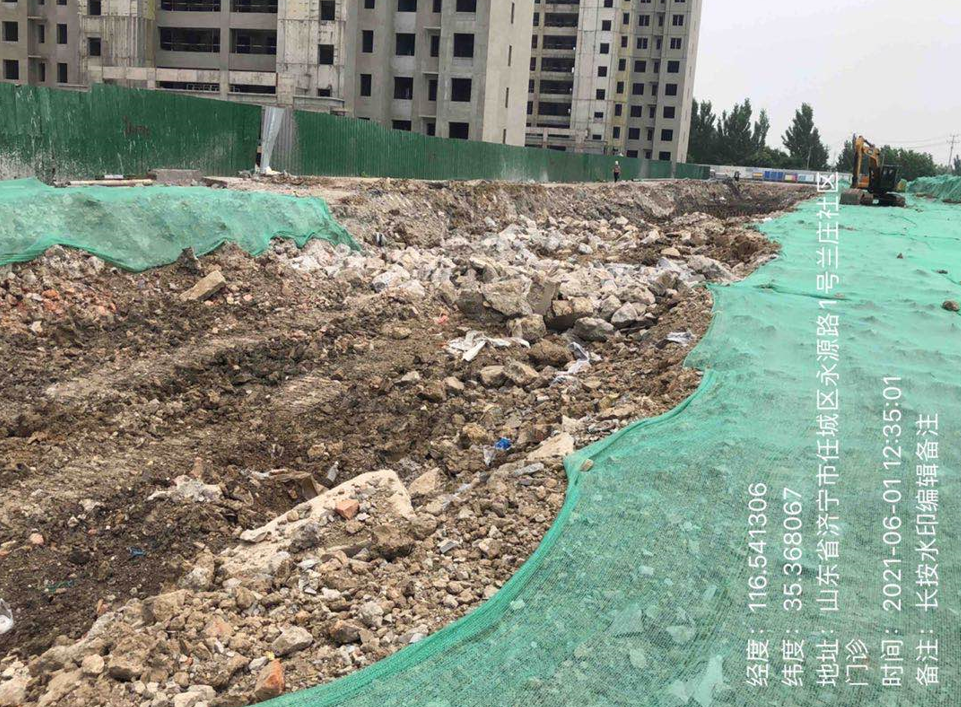 任城区谢营拆迁工地覆盖不完全,防尘网破损。