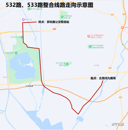 取消532路、533路两条线路,整合开通为新线路: