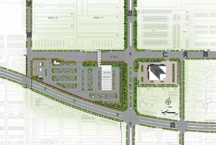 卡口与监管保税物流仓库建成后可供海关和检测检疫部门共同使用,具备海关监管、检测检疫、仓储物流、办公和信息服务等功能。项目建设内容包括三层办公区、一层仓储区,结构形式采用独立基础的混凝土框架结构,并配套建有电器、消防、给排水、通风空调和建筑智能化等设备设施。