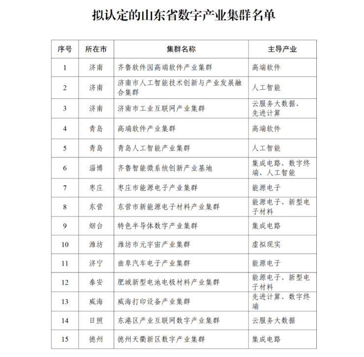 济宁一项入选!首批山东省数字产业集群拟认定名单发布