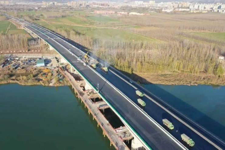 近日,随着最后一车沥青混合料碾压到位,大清河特大桥桥面沥青摊铺全部完成。至此,济菏改扩建工程主线已全部完成沥青路面施工,年底前将实现全线通车。