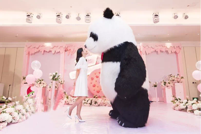 巨型熊猫人偶也会一直给你加油鼓劲呦