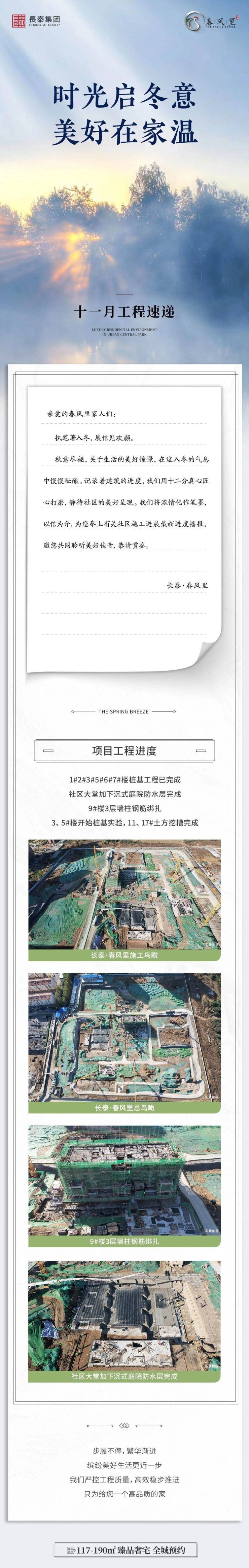 秋意尽褪,关于生活的美好憧憬,长泰·春风里在这入冬的气息中慢慢酝酿。记录着建筑的进度,我们用十二分真心匠心打磨,静待社区的美好呈现。我们将浓情化作笔墨,以信为介,为您奉上有关社区施工进展最新进度播报,邀您共同聆听美好佳音,恭请赏鉴。