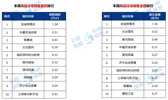 本周龙城常青府项目以销售面积1.38万㎡,销售金额1.36亿元,位居双排行榜排名前列。