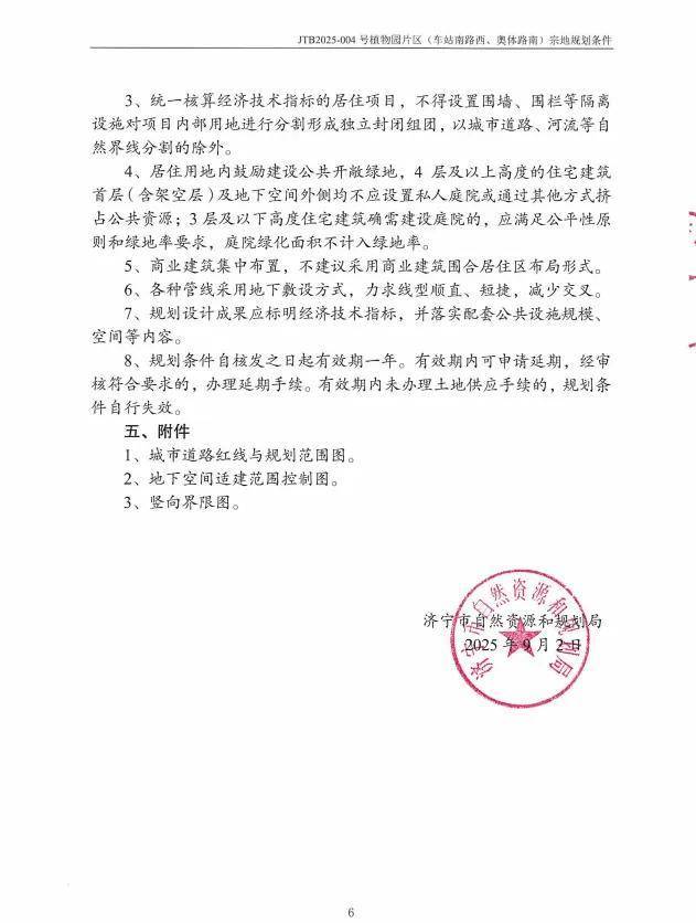 地块名:太白湖新区JTB2025-004号植物园片区(车站南路西奥体路南)地块一【济宁瑞拓置业有限公司竞得】